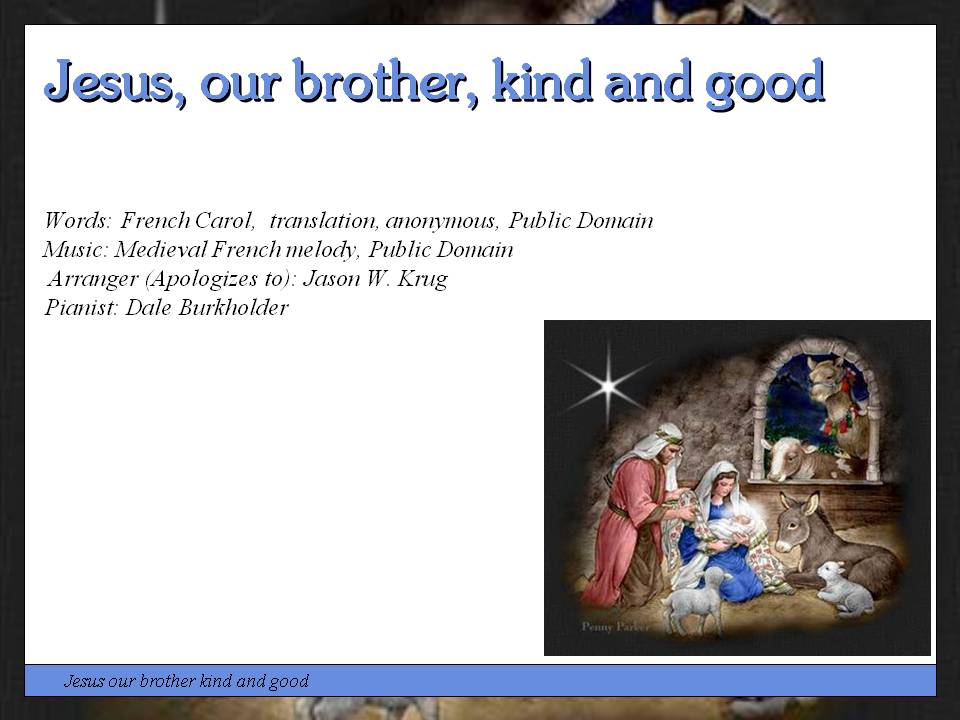 Posted in Uncategorized | Comments Off on Jesus our brother kind and good (Krug)